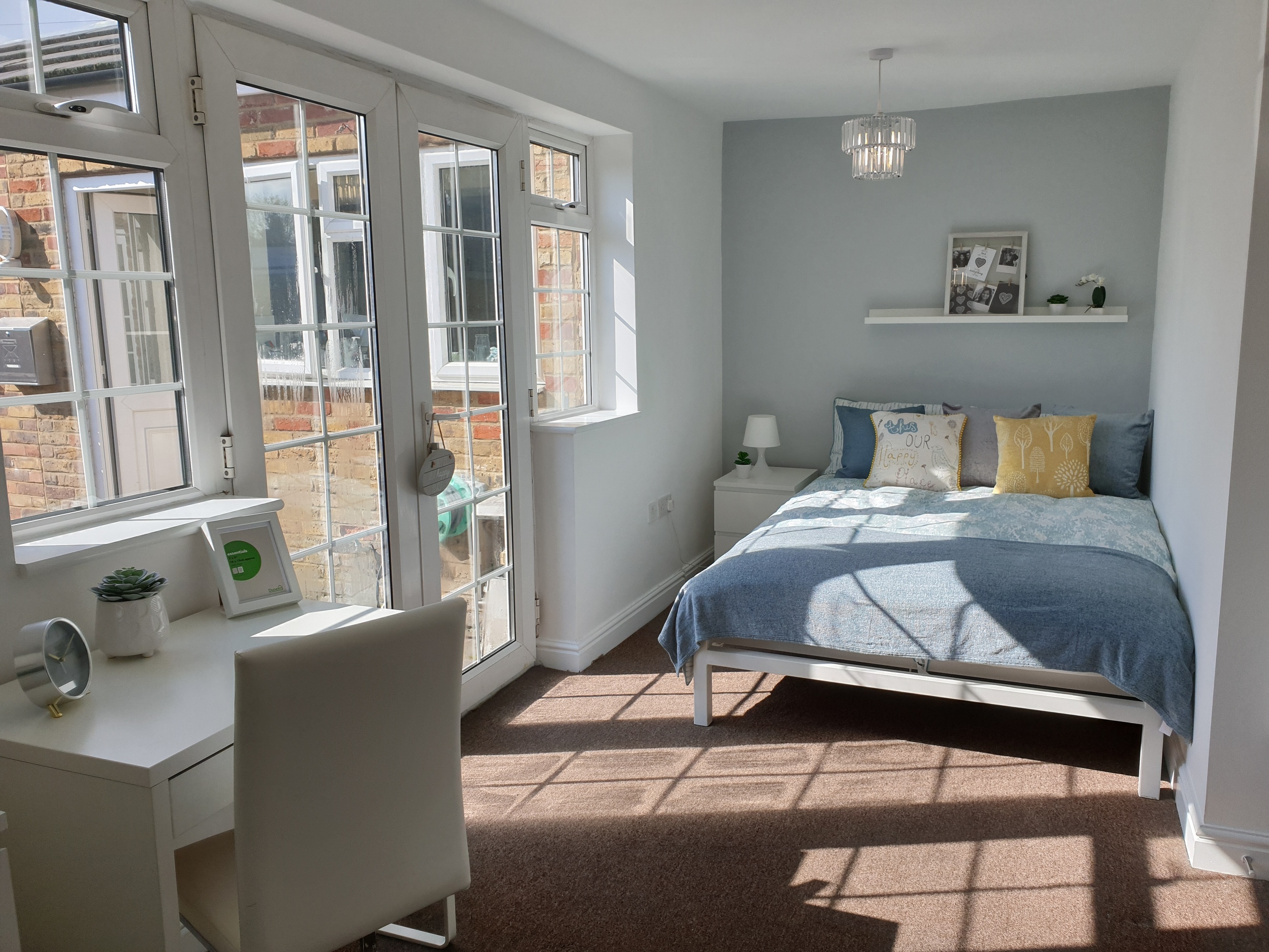 • Fully furnished bedrooms; double bed, wardrobe, chest of drawers, bedside table, desk and chair.