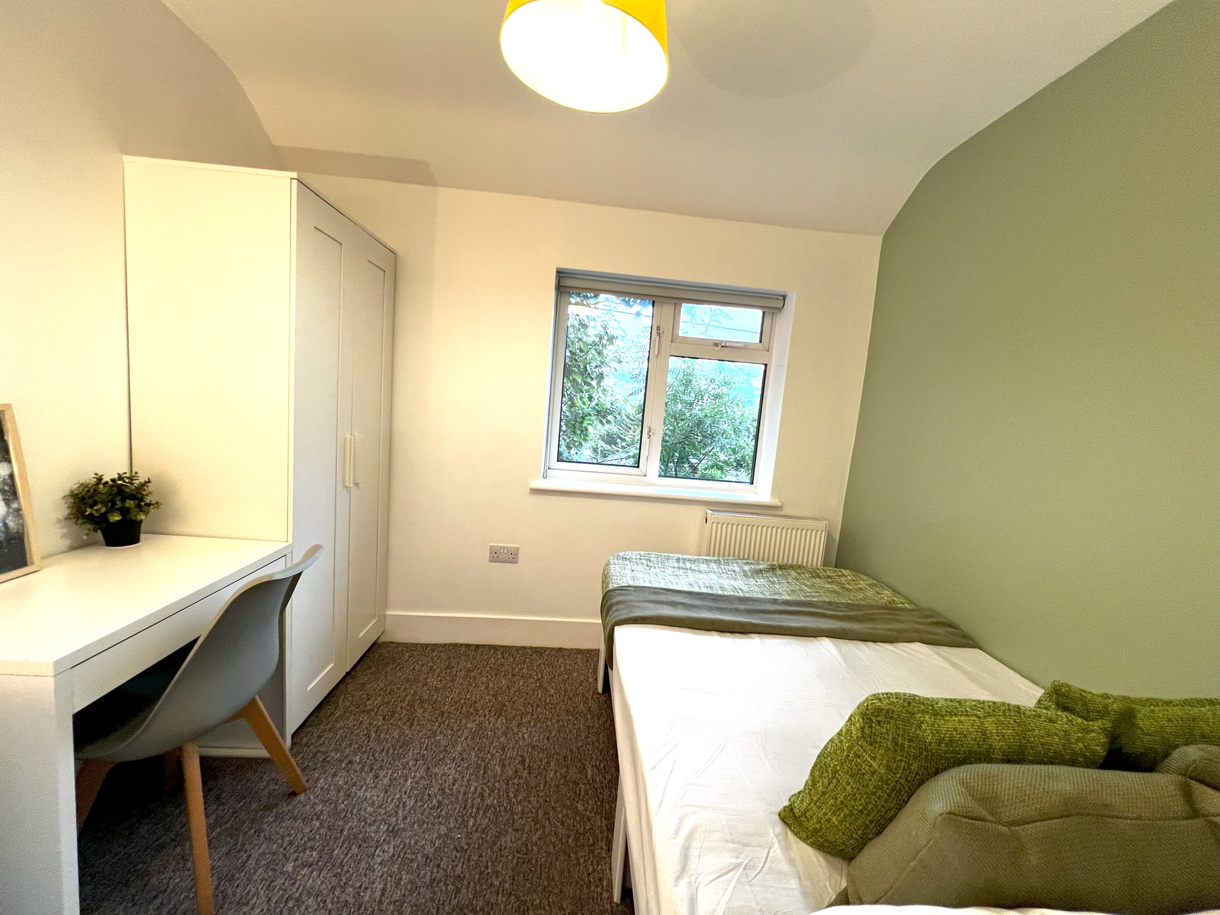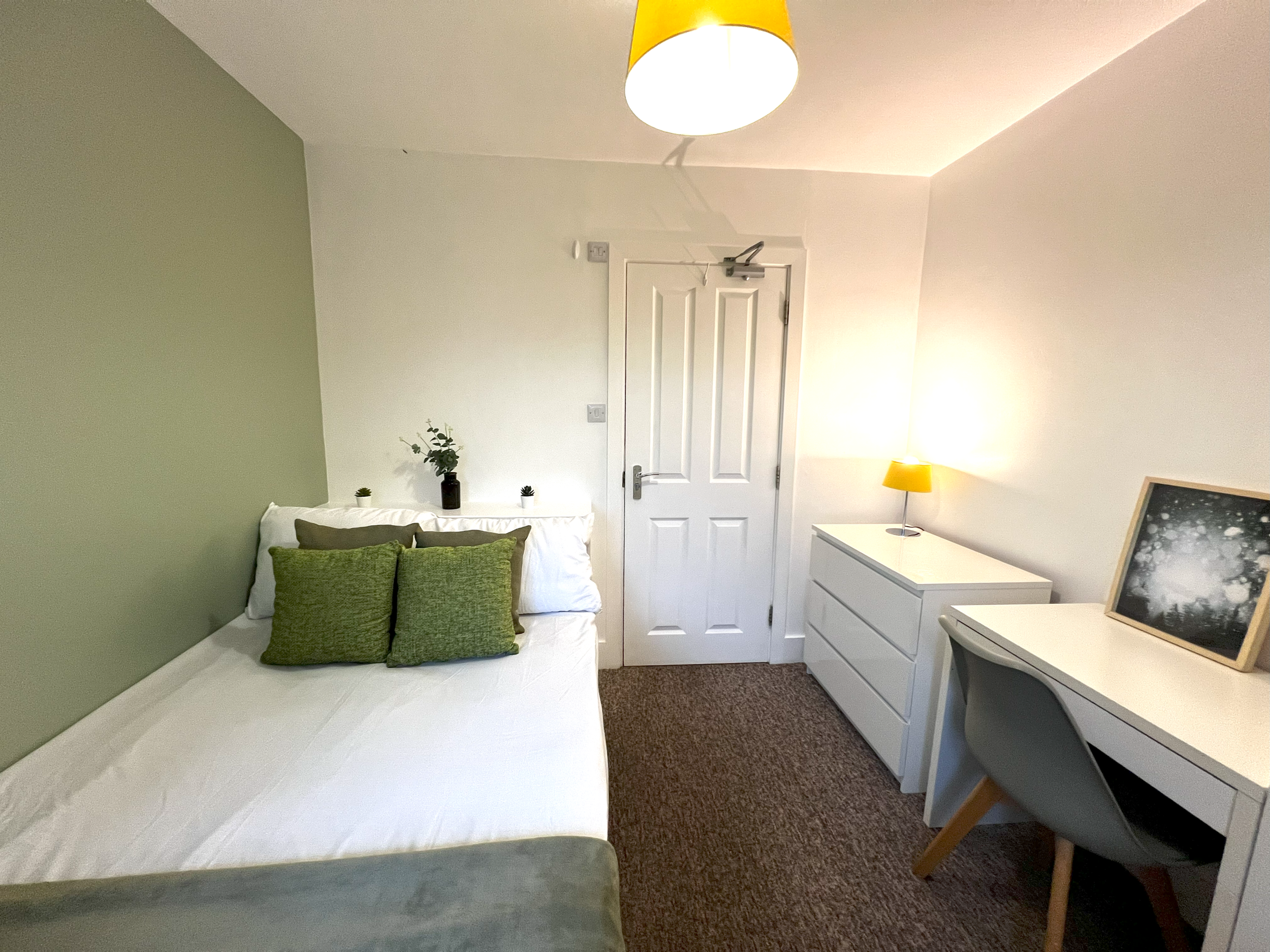 • Fully furnished ensuite bedrooms; double bed, wardrobe, chest of drawers, bedside table, desk and chair.